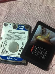 鶯歌林小姐,電腦時常系統開機很久,開啟軟體都要跑很久,礙於預算問題,與工程師討論後決定更換SSD與系統重灌,不過這台在安裝作業系統windows10會發生凍結情形,經過測試安裝windows 7 .10 .8 與8.1 都不會,因此在於介面使用習慣上我們決定安裝windows 7 作業系統,經過一連串的拆解筆電背板,從500G的WD藍標傳統硬碟更換為有3D NAND技術的UMAX S350 SSD ,更換後速度明顯提升,可能礙於晶片組的關係無法發揮SSD最高速度。
